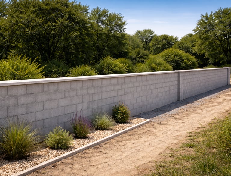 Murs de clôture sur mesure en parpaings, avec ou sans seuils de portails, réservations et finitions adaptées.