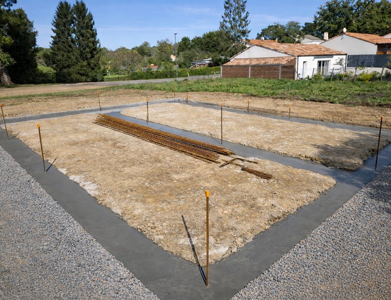 Fondations adaptées à chaque projet, avec ferraillage conforme, béton dosé et respect des niveaux.