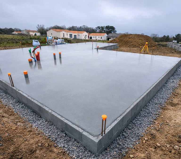 Dallages et dalles béton pour maisons, garages, terrasses et annexes, réalisés avec précision et durabilité.